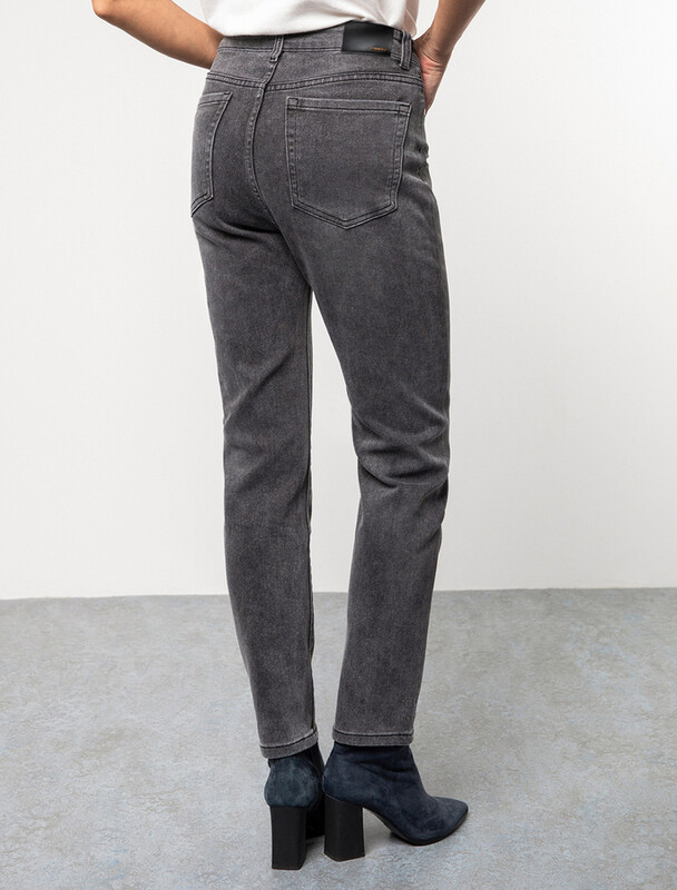 Джинсы прямого силуэта сшиты из эластичного денима средней плотности. Универсальные и практичные для любого времени года с кроссовкамии, туфлями и сапогами. На верх с классической блузкой, водолазкой и свитером крупной вязки.
