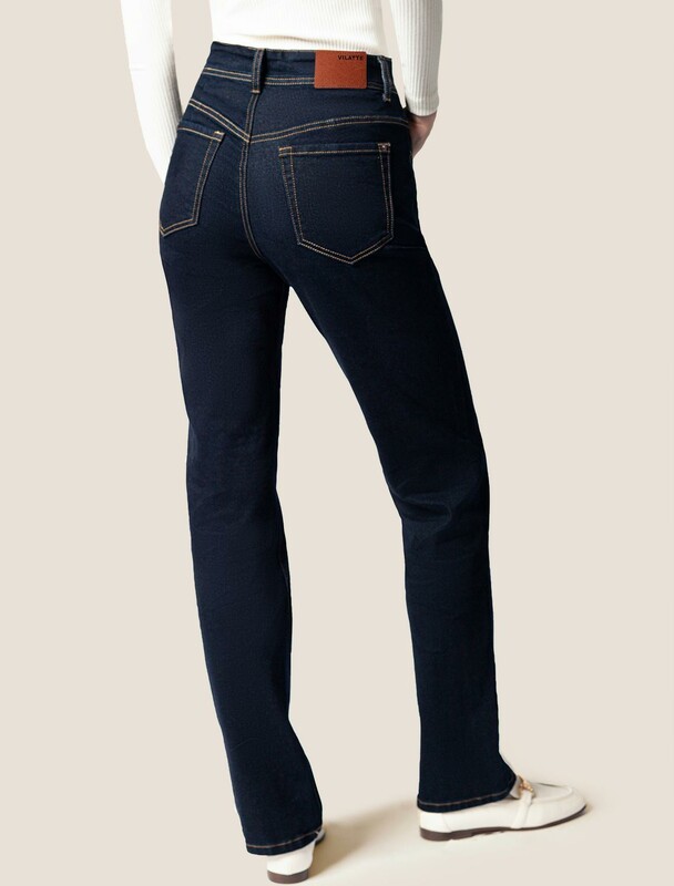 Прямые джинсы выполнены из эластичного денима. Удлиненная модель универсального черного цвета легко впишется в любой, даже строгий офисный образ с жакетом и блузкой. Комфортная посадка на талии подходит для любой фигуры, ткань хорошо тянется и не сковывает движений. На поясе сзади расположен нашивка из эко-кожи с логотипом бренда. Длина изделия позволяет выбрать к образу обувь на каблуке