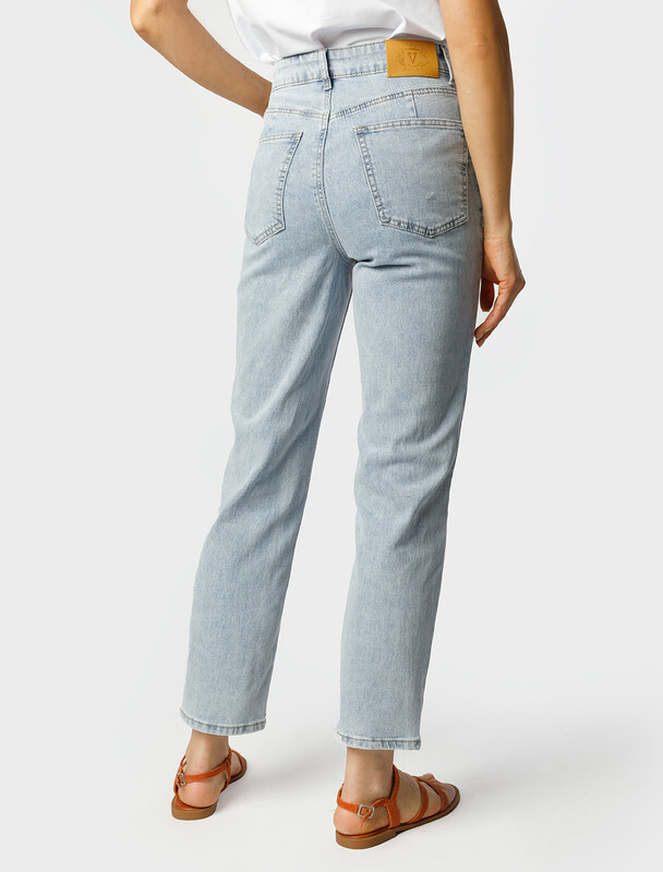 Джинсы с легкой стиркой выполнены из эластичного денима. Модель прямого кроя с посадкой по фигуре. Эластан в составе гарантирует комфорт и предотвращает вытягивание. Модель найдет свое место в любом гардеробе на все случаи жизни. Изделие дополнено фирменным патчем.