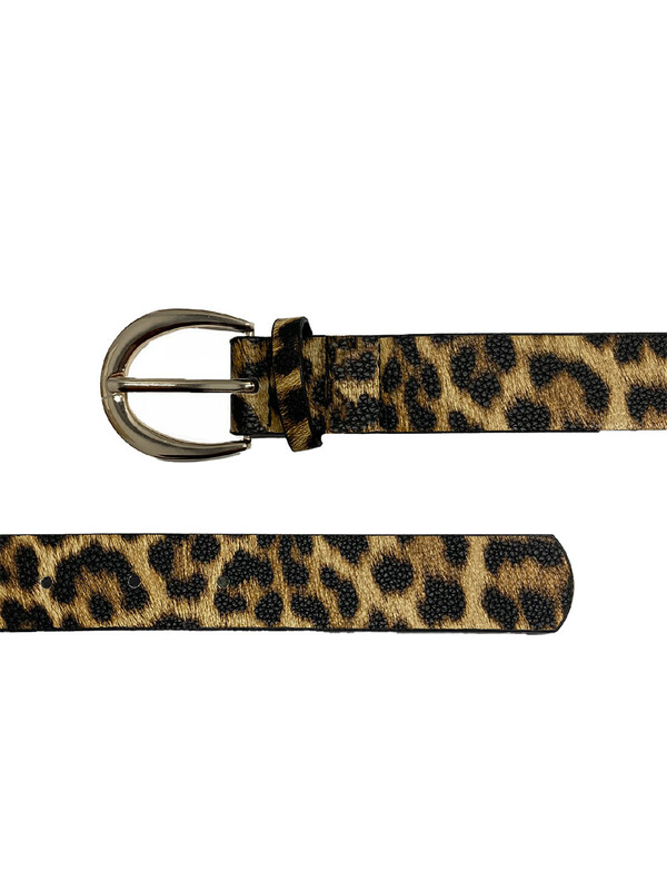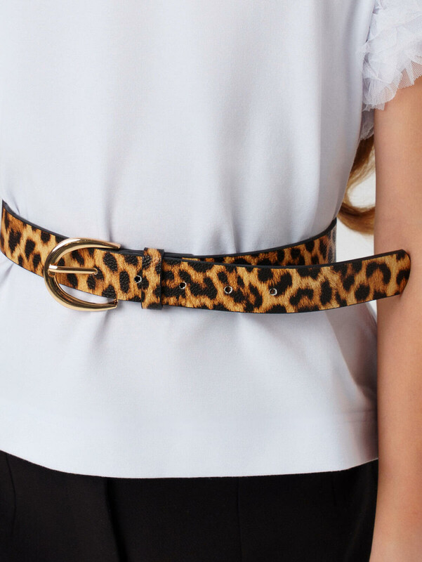 Стильный ремень с леопардовым принтом для девочки подростка. Ремень выполнен из искусственной кожи с теснением под леопард. Цвет пряжки - золото. Ширина ремня 2,6 см. Представлен в двух длинах 75 и 85 см (для подбора ремня ориентируйтесь по таблице размеров). На ремне 5 отверстий, которые позволяют регулировать обхват ремня +/- 5 см от заданного обхвата талии.