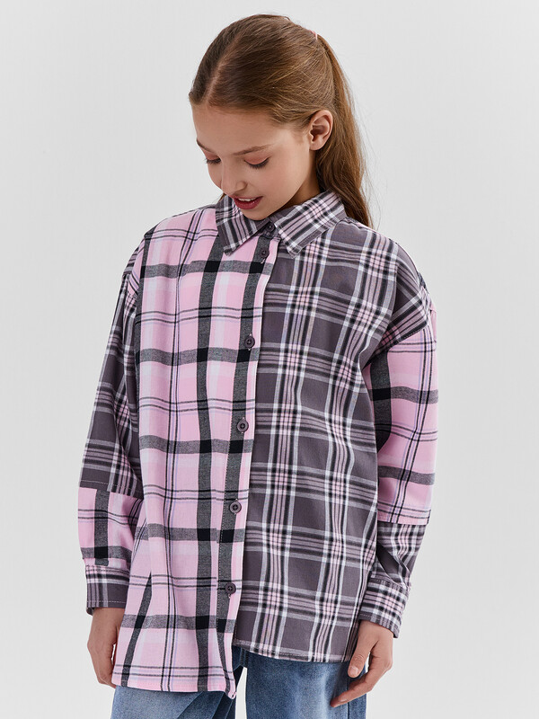 РУБАШКА ДЛЯ ДЕВОЧЕК 127998 (128-134 (134-68), Розовая клетка)(Mark Formelle)