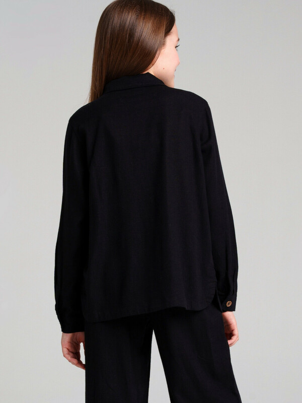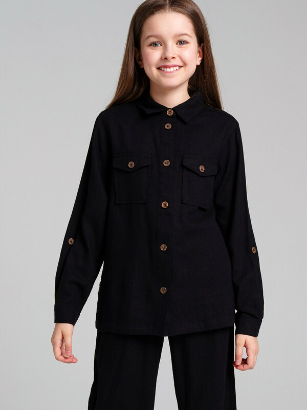 Рубашка для девочки. Приятный к телу материал с высоким содержанием вискозы. Свободный силуэт. Застёжка на пуговицы. Функциональные карманы.