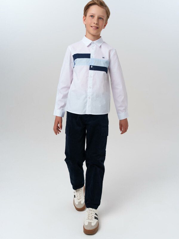 Стильная школьная рубашка свободного кроя — идеальный выбор для торжественных мероприятий и повседневной школьной носки.