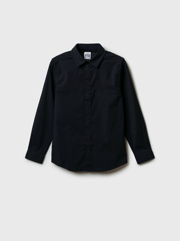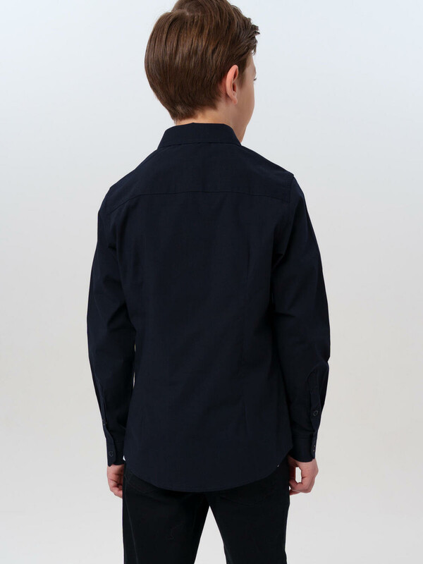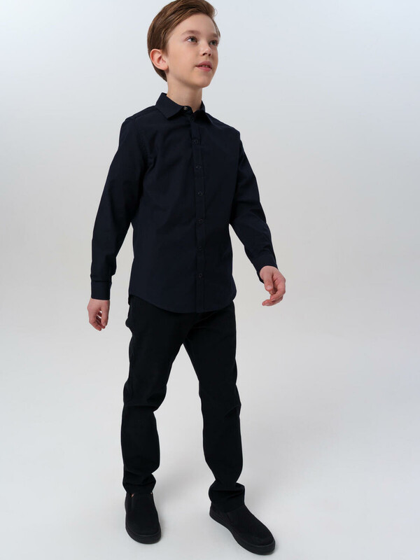 Приталенная рубашка с длинным рукавом застёгивается на классические кнопки, а воротник держит форму даже после многократных стирок. Темно-синий цвет делает её универсальной — её можно надеть и с жилетом, и под школьный пиджак из коллекции PlayToday, а также дополнить галстуком или бабочкой. Это не просто школьная рубашка — это база, с которой начинается любой продуманный образ.