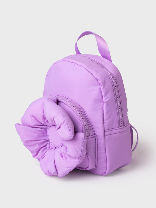 Небольшой рюкзочок с карманом, который украшен объемным большим цветком. Внутри имеется два кармана, один из них на молнии. Лямки рюкзака регулируемые. Параметры рюкзака: высота - 20 см , ширина - 17,5см, глубина - 8 см
