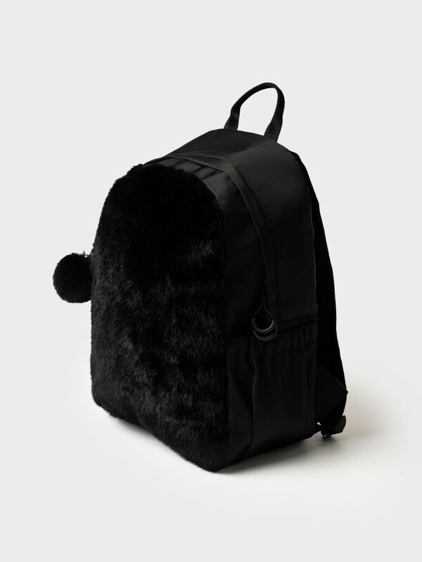 Легкий стильный меховой рюкзак с уплотненной вентилируемой спинкой для девочки подростка. Спереди рюкзак выполнены из мягкого искусственного меха, основная часть - из качественной и плотной водонепроницаемой ткани. Молния имеет защитный клапан от попадания воды. Рюкзак для школы имеет одно отделение с различными карманами внутри для систематизации школьных принадлежностей. Спереди имеется боковой кармана на молнии, который украшен трендовыми брелоками. По бокам также есть карманы. Широкие мягкие вентилируемые лямки регулируются по высоте. У рюкзака есть ручка для ношения в руке и для того, чтобы его можно было вешать на вешалку. Ранец имеет светоотражающие детали на лямках. Рюкзак в школу можно дополнить пеналом в том же дизайне. Размер рюкзака: 30*40*15 см. Вес рюкзака: 435 гр