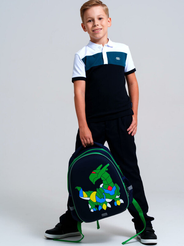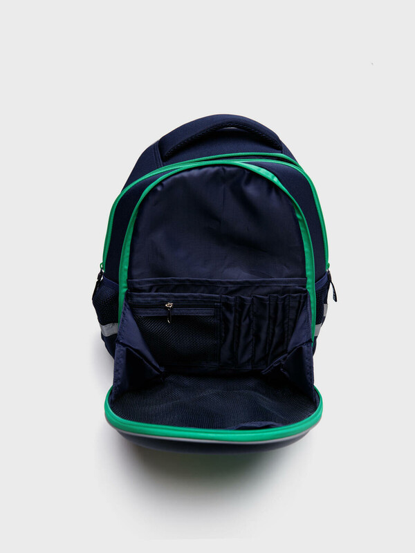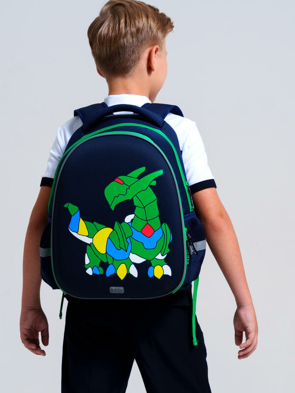 Школьный рюкзак для мальчика подростка. Формованный ранец с ортопедической вентилируемой спинкой, распределяющей равномерно нагрузку на спину ребенка. Широкие вентилируемые лямки, регулируемые под рост и одежду ребенка. Ранец отлично держит форму, не деформируется при складывании в него школьных принадлежностей, устойчивое дно с пластиковой накладкой. Влагозащитная пропитка, светоотражающие элементы на лямках, карманах и передней панели, а так же по периметру задней и передней панелях, основное отделение на молнии, дополнительный отсек на молнии, два боковых кармана, внешний карман на молнии, в основном отделении большой внутренний карман с тремя отсеками для папок и тетрадей с эластичной лентой липучка, в дополнительном отсеке карманы и отсеки для канцелярских принадлежностей. Рюкзак в школу можно дополнить мешком для обуви и пеналом в том же дизайне.