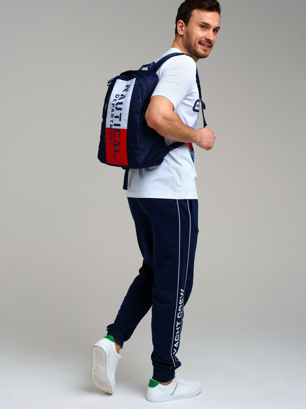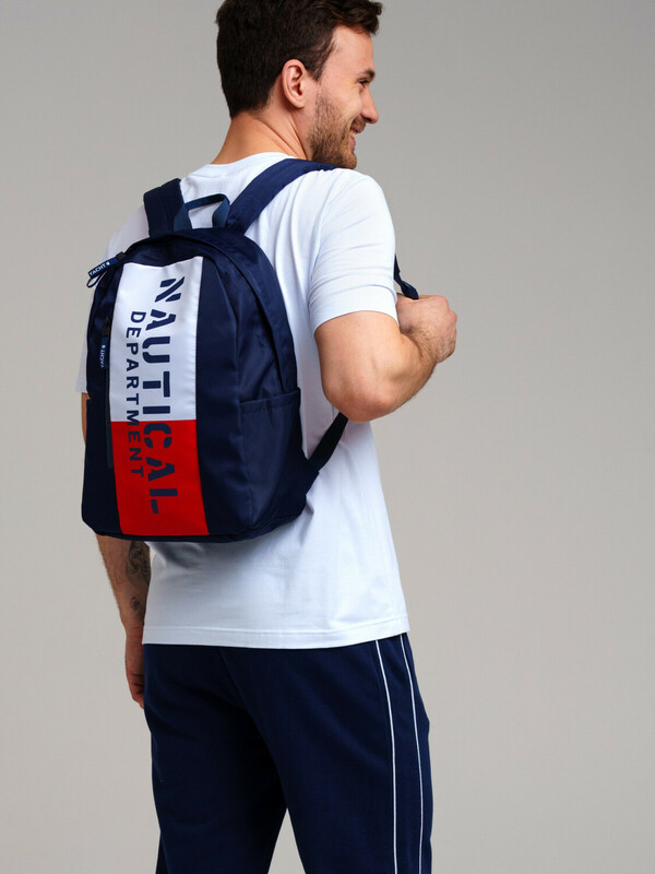 Рюкзак текстильный. 40*30*15 см. Широкие регулируемые мягкие лямки. Основное отделение и 1 карман на молнии. 2 боковых кармана без молнии. Внутри - отделение для ноутбука, 1 карман на молнии, 2 кармана без молнии, карабин для ключей. Усиленная спинка. Водонепроницаемая ткань. Усиленное дно.