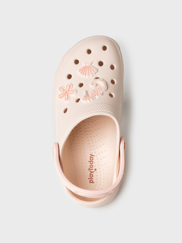 Сабо детские для девочки. Сабо из облегченного и прочного ЭВА. Материал хорошо моется. Модель украшена патчими в морской тематике. Форма модели учитывает эргономику стопы. Модель имеет перекидной ремешок для лучшей фиксации обуви на ноге. Благодаря вентиляционным отверстиям сабо проветриваются, ноги ребенка дышат и не потеют.