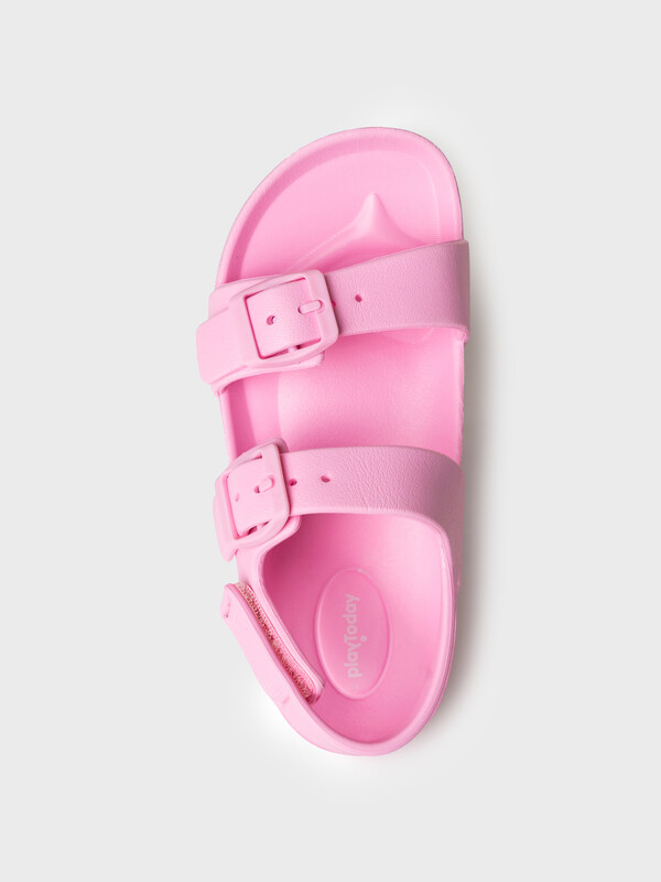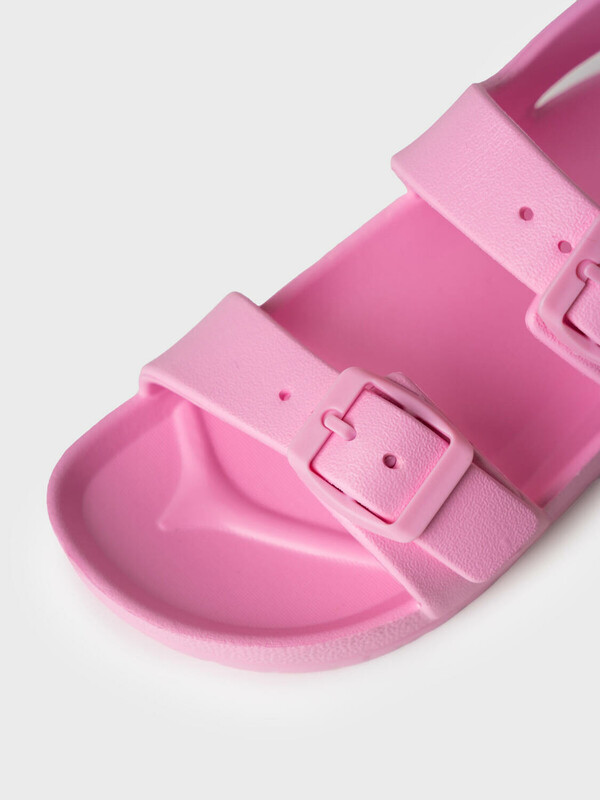 Пляжные сандалии из облегченного ЭВА с регулируемой союзкой двумя ремешками. Фиксация пятки ремешком на липучке. Материал хорошо моется. Удобная колодка.
