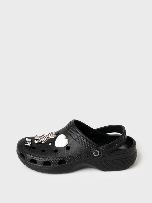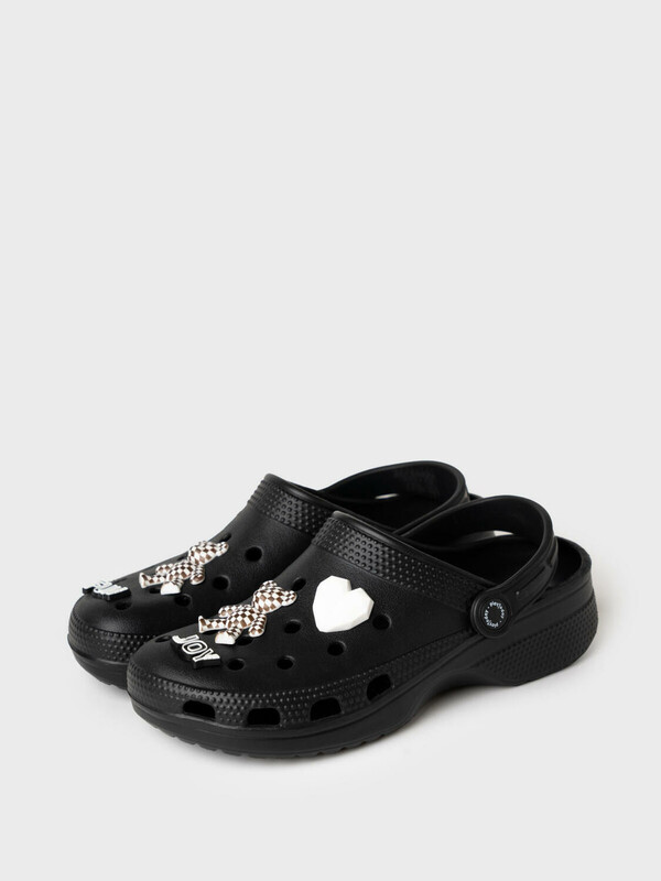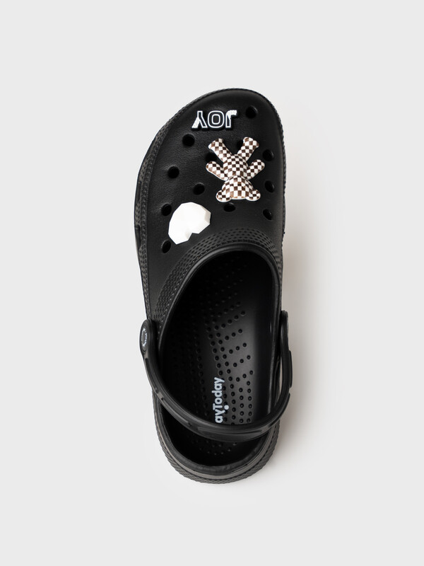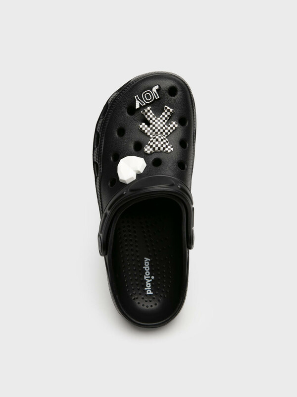 Трендовые сабо для девочки подростка в черно-белой гамме. Шлепанцы выполнены из облегченного и прочного ЭВА. Материал хорошо моется. Модель украшена фирменными джибицами. Форма модели учитывает эргономику стопы. Модель имеет перекидной ремешок для лучшей фиксации обуви на ноге.