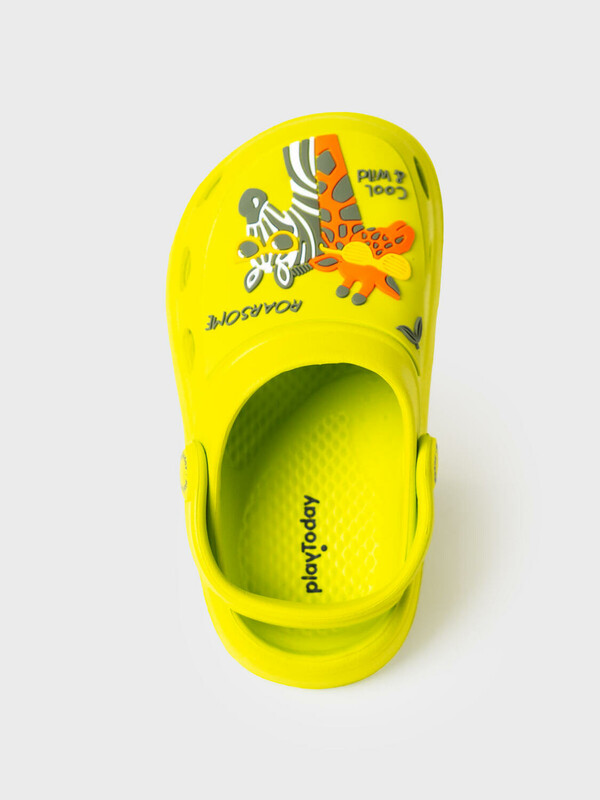 Сабо детские для мальчика. Сабо из облегченного и прочного ЭВА. Материал хорошо моется. Объемный рисунок на правой и левой полупарах рассказывают нам целую историю мира зоопарка. Форма модели учитывает эргономику стопы. Модель имеет перекидной ремешок для лучшей фиксации обуви на ноге. Благодаря вентиляционным отверстиям сабо проветриваются, ноги ребенка дышат и не потеют.