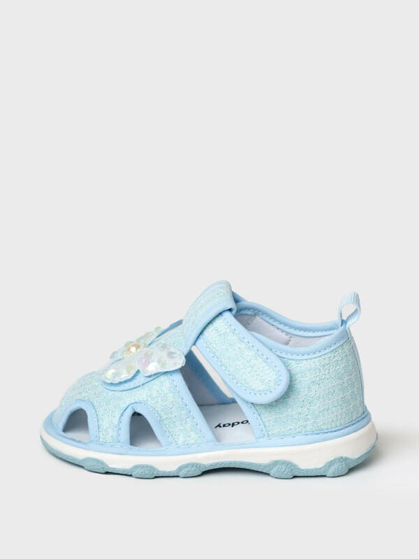 Сандалии детские для девочки. При ходьбе сандалии издают писк - для ребенка это интересный игровой элемент, а мамы будут всегда слышать своего ребенка на детской площадке. При желании пищалку можно вынуть. Сандалии с закрытой пяткой и удобным ремнем с липучкой, который позволяет ребенку обуваться самостоятельно. Модель выполнена из экологичного и гипоаллергенного хлопкового материала, который идеально подходит для маленьких детей. Двухсоставная подошва из ТПР очень гибкая, легкая и нескользкая. Особая технология сборки обуви добавляет ей дополнительный комфорт.