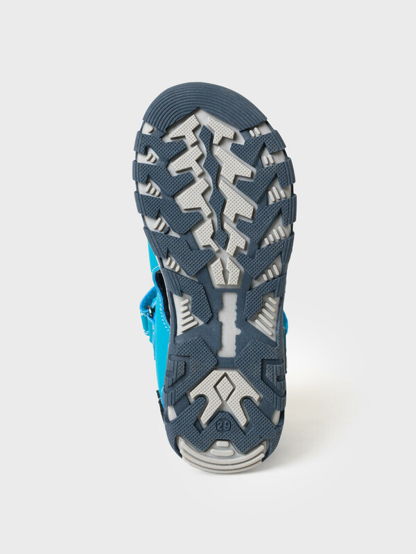 Сандалии для мальчика с закрытой пяточной частью. Удобные застежки-липучки позволяют ребенку легко обуваться самостоятельно, кроме того с их помощью можно регулировать подъем обуви. Модель декорирована фирменным патчем. Сзади на пятке имеются защитные ПВХ полоски, которые предохраняют обувь от изнашивания, если ее снимать нога об ногу, как любят снимать все дети. Сандалии выполнены из искусственного нубука и дышащего текстиля. Модель имеет светоотражающие элементы. Текстильная подкладка c высоким содержанием хлопка 80% обладает высокой гигроскопичностью. Стелька выполнены из натуральной кожи и имеет анатомический элемент для поддержания свода стопы в правильном положении. Модель имеет облегченная подошва из ТПР с противоскользящим протектором.