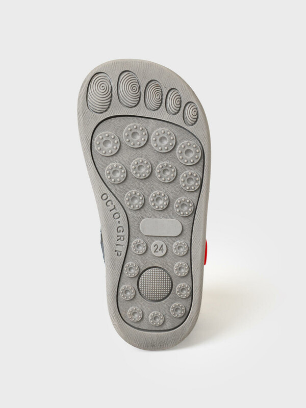 Сандалии для мальчика с закрытой носочной и пяточной частью выполнены из искусственного нубука. Удобный ремень с липучкой позволяют регулировать обувь на любой подъем и позволяют ребенку обуваться самостоятельно. Подкладка выполнена из натуральной свиной кожи. Стелька выполнена из натуральной кожи. Подошва из ТПР гибкая и нескользкая. Подошва дополнительно прошита по бортику для дополнительной прочности и гибкости. Парфюмированная подошва имеет запах кокоса. Модель выполнена по технологии BAREFOOT (босоногая обувь): широкая носочная часть повторяет естественную форму стопы ребенка, легкая, гибкая и хорошо амортизирующая подошва, специальный рисунок протектора подошвы, имитирующий присоски осьминога для лучшего сцепления с дорогой.
