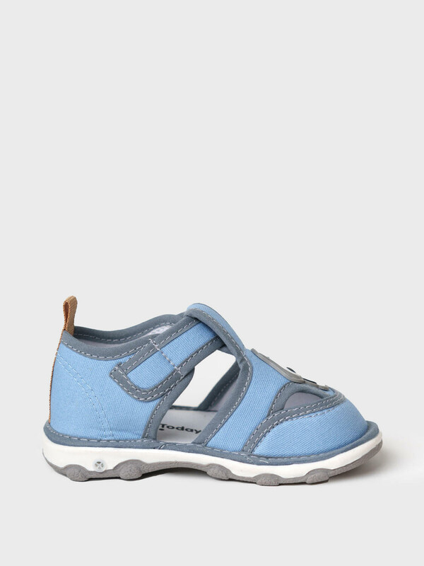 Сандалии детские для мальчика. При ходьбе сандалии издают писк - для ребенка это интересный игровой элемент, а мамы будут всегда слышать своего ребенка на детской площадке. При желании пищалку можно вынуть. Сандалии с закрытой пяточной и носочной частью и удобным ремнем с липучкой, который позволяет ребенку обуваться самостоятельно. Модель выполнена из экологичного и гипоаллергенного хлопкового материала, который идеально подходит для маленьких детей. Модель декорирована милыми патчами. Двухсоставная подошва из ТПР очень гибкая, легкая и нескользкая. Особая технология сборки обуви добавляет ей дополнительный комфорт.