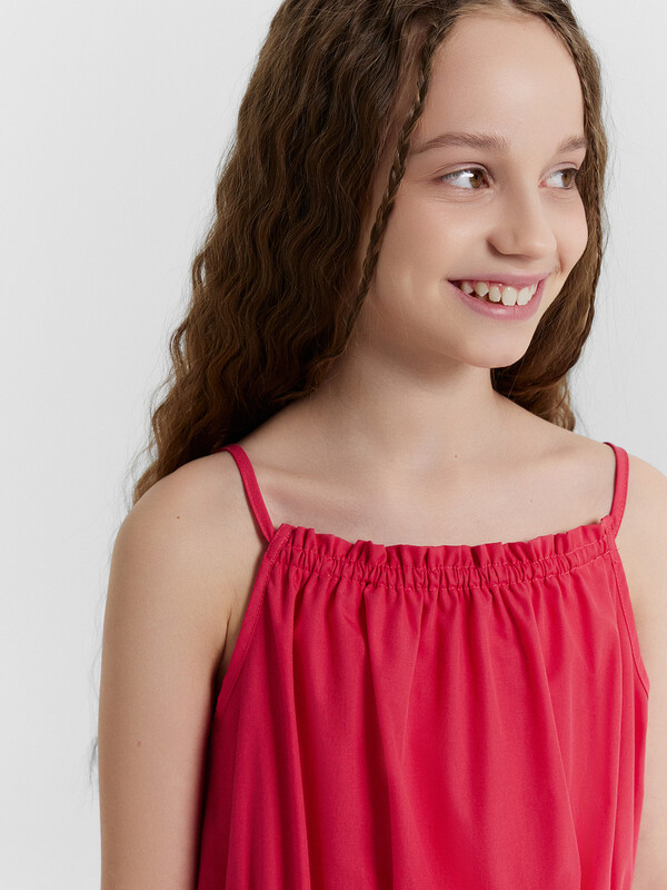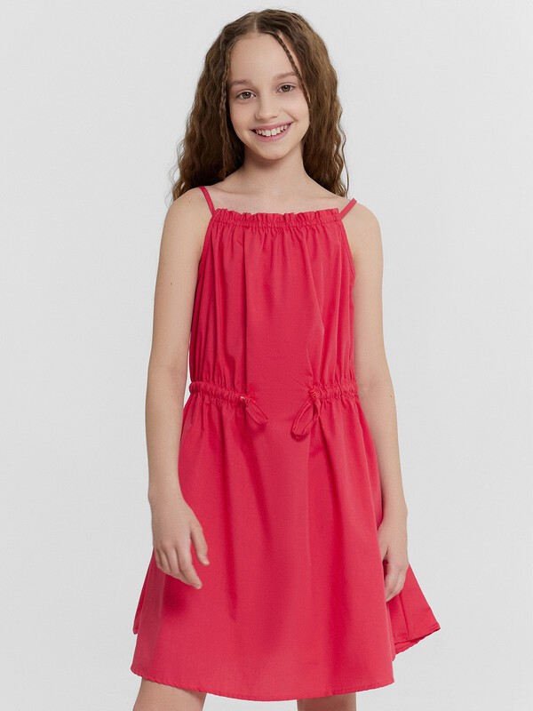 Этот стильный сарафан для девочек — прекрасный выбор для летнего гардероба! Модель на тонких бретелях создает легкий и элегантный образ, идеально подходящий для теплых дней. Эластичная сборка в области груди и талии не только добавляет изящности, но и позволяет регулировать приталенность, обеспечивая комфортную посадку и подчеркивая силуэт. Изделие выполнено из комбинации натурального хлопка и полиэстера. Такое сочетание делает сарафан мягким, приятным к телу и при этом долговечным, устойчивым к износу. Материал легкий и позволяет коже дышать, что особенно важно в жаркую погоду. Сарафан идеально подойдет для прогулок, семейных мероприятий или повседневного ношения. Он прекрасно сочетается с сандалиями, балетками или легкими кедами, добавляя нежности и свежести в каждый образ!