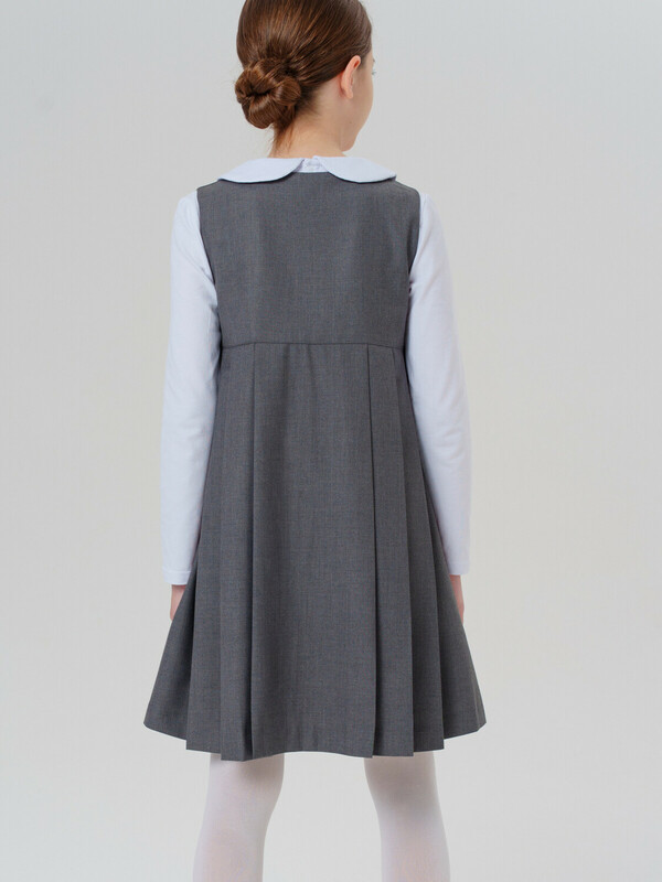 Серое школьное текстильное платье сарафан для девочки-подростка
