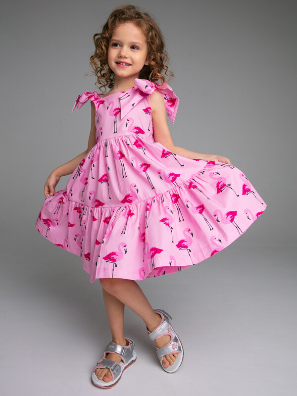 Летний сарафан А-силуэта; высокое содержание хлопка; завязки на плечах