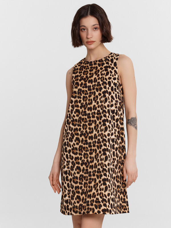 Сарафан А-силуэта, длиной мини. Горловина круглой формы. Проймы углублены. Горловина и проймы обработаны обтачками из основного полотна. По переду застрочены вытачки. Спинка с центральным швом и застежкой на потайную молнию. Нижний срез обработан обтачкой из основного полотна.
