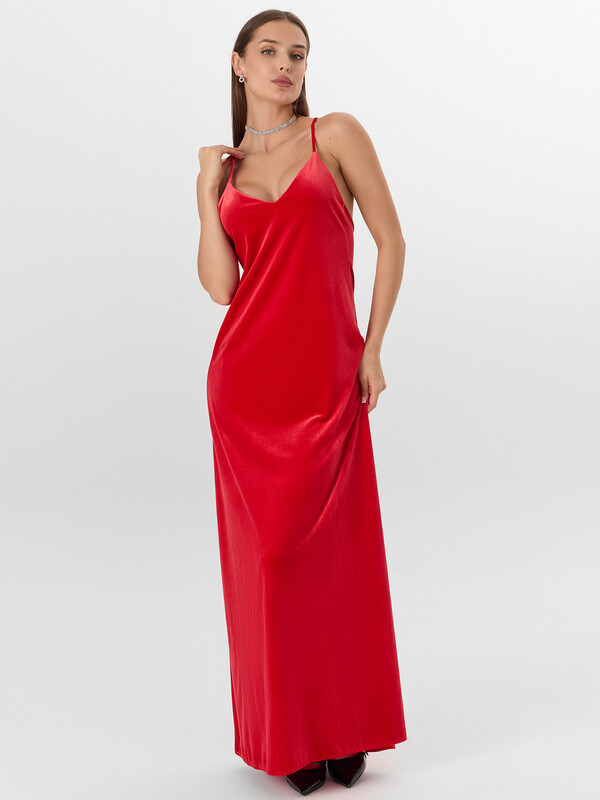 Сарафан из лимитированной коллекции Mark Formelle x Ольга Бузова — модель для важных событий и особых моментов. Изделие выполнено из мягкого велюра с добавлением спандекса, что обеспечивает комфортную посадку и свободу движений. Полуприлегающий силуэт мягко следует за линиями тела, создавая элегантный контур.