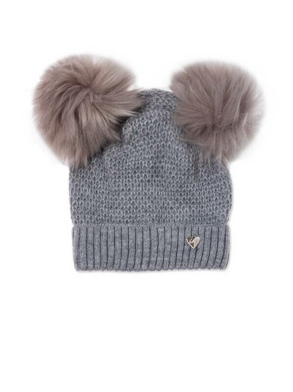 Нежные цвета, пушистые меховые помпоны-ушки, оригинальное плетение в стиле ручного вязания – эта шапочка с отворотом очень понравится вашей маленькой моднице и прекрасно дополнит любой зимний гардероб.