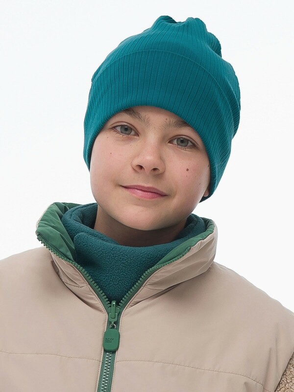 Трикотажная двойная шапка для мальчика вязкой в рубчик. Детская шапка для мальчика, отлично сидит на голове, отворот на шапке хорошо закрывает уши. Благодаря универсальному размеру и тянущейся ткани шапка подойдет на разные головы.
