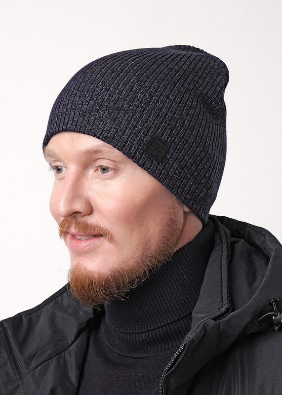 Мужская шапка двойная без отворота, без подклада, декорирована стильной нашивкой. Идеальный вариант на осень, весну.