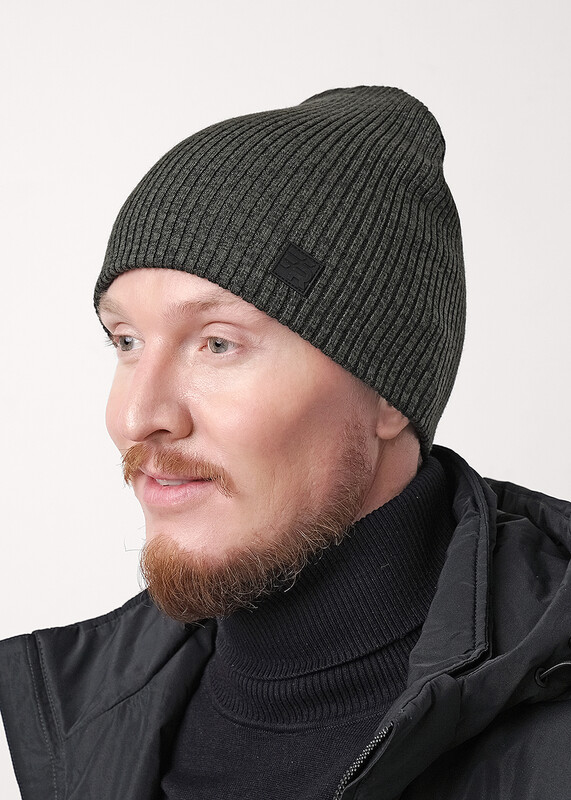Мужская шапка двойная без отворота, без подклада, декорирована стильной нашивкой. Идеальный вариант на осень, весну.