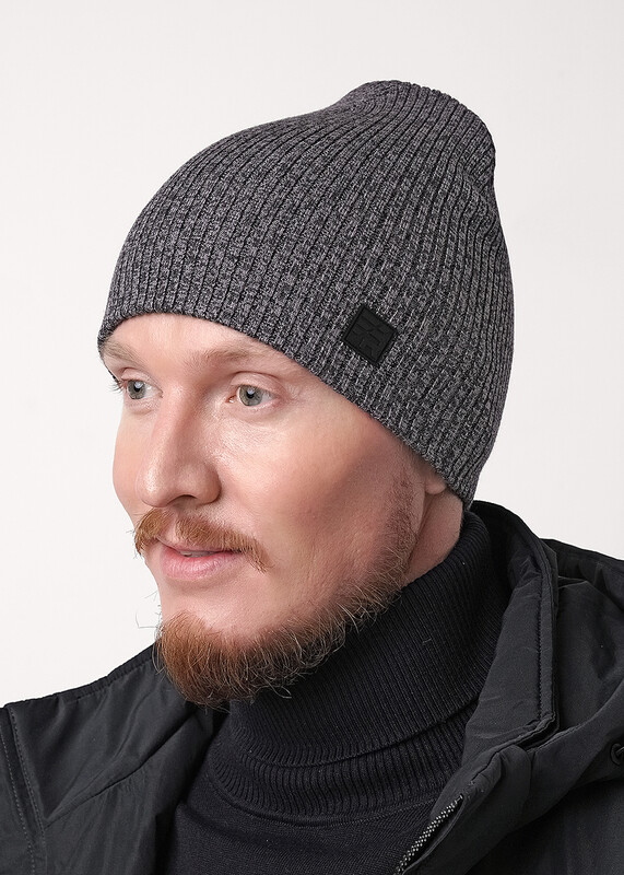 Мужская шапка двойная без отворота, без подклада, декорирована стильной нашивкой. Идеальный вариант на осень, весну.