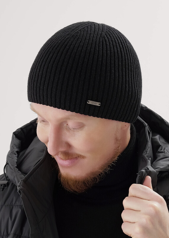 Шапка мужская двухслойная без отворота, без подклада. Выполнена из высококачественной пряжи с добавлением шерсти, декорирована стильной нашивкой в височной зоне. Идеально подойдёт для холодной зимы.