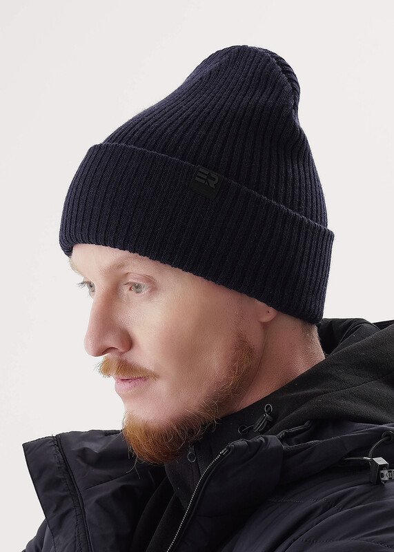 Мужская шапка с отворотом выполнена из высококачественной пряжи с добавлением шерсти, декорирована логотипом- нашивкой.