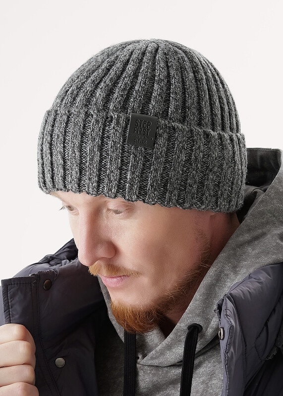 Мужская шапка из скрученой пряжи с отворотом, декорирована стильной нашивкой- логотип. Идеально подойдёт для холодной осени, тёплой зимы.