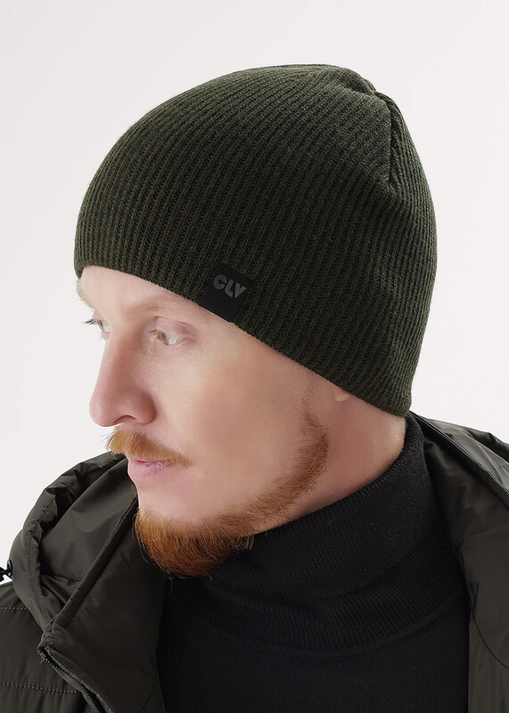 Шапка мужская двойная, без отворота, без подклада. Выполнена из высококачественной пряжи с добавлением шерсти, декорирована стильной нашивкой.