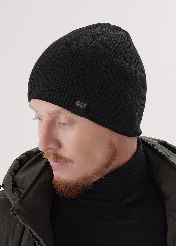 Шапка мужская двойная, без отворота, без подклада. Выполнена из высококачественной пряжи с добавлением шерсти, декорирована стильной нашивкой.