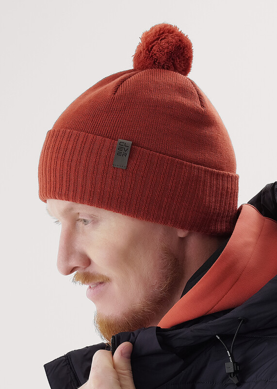 Мужская шапка двойная с отворотом и ниточным пампоном, без подклада. Выполнена из высококачественной пряжи с добавлением шерсти, декорирована стильной нашивкой. Станет не только отличной защитой от холода, но и модным аксессуаром.