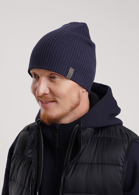 Шапка связаная ластиком, декорирована стильной нашивкой. Подойдёт для осенне- весеннего периода.