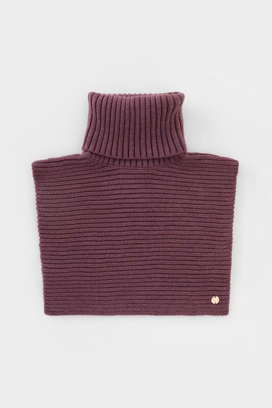 Уютная вязаная манишка с высоким воротником из шерсти и акрила. Шерсть в составе хорошо удерживает тепло, а волокна акрила делают изделие мягким и предотвращают деформацию и появление катышек. Лаконичный крой хорошо сочетается с верхней одеждой.