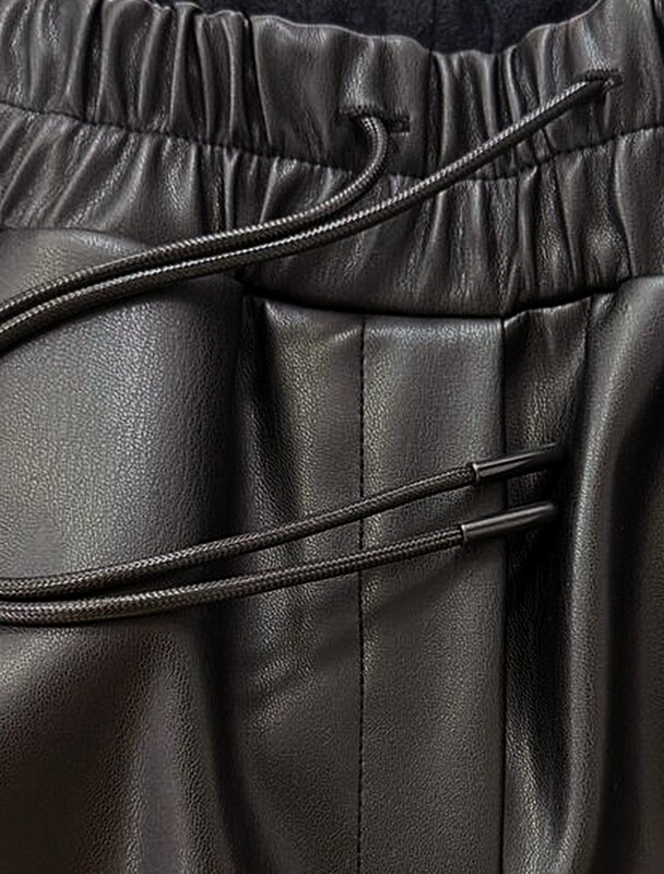 Трендовая модель для смелых fashion-образов. Эти брюки из качественной искусственной кожи создают бунтарский урбанистический лук. Модель с высокой посадкой на поясе и равномерно широким клешёным силуэтом от бедра до низа визуально вытягивает фигуру. Мягкая подкладка пояса обеспечивает комфорт, не сдавливая талию. Универсальный черный цвет легко комбинируется с объемными худи, кроп-топами или лаконичными рубашками. Идеальны для создания образов в стиле гранж, streetwear или modern rock-chic.