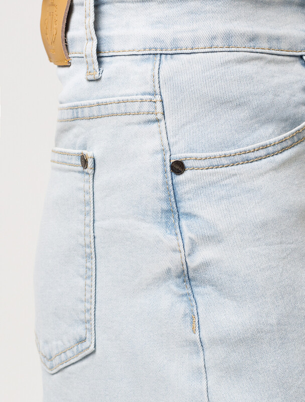Шорты-бермуды выполнены из эластичного денима с декоративными потертостями. Изделие хорошо тянется и не сковывает движений. Подойдет для образов в любом сезоне. На поясе расположен брендированный патч.