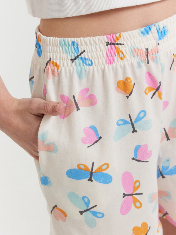 Стильные шорты из трикотажной кулирки. Линия талии классическая. В поясе – трикотажная резинка. Есть боковые карманы. Отличный повседневный вариант!