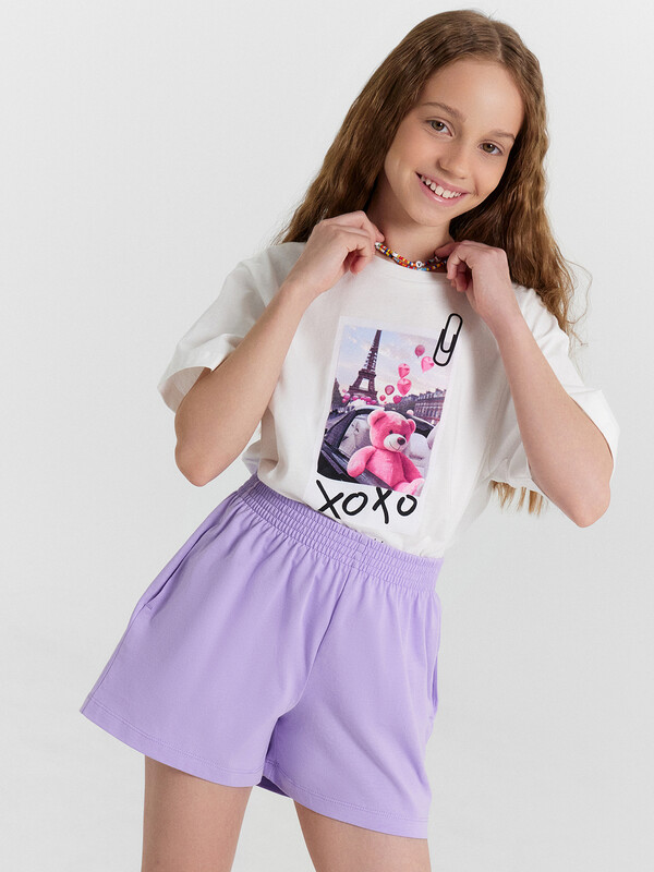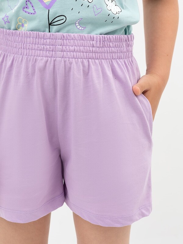 Стильные шорты из трикотажной кулирки. Линия талии классическая. В поясе – трикотажная резинка. Есть боковые карманы. Отличный повседневный вариант!