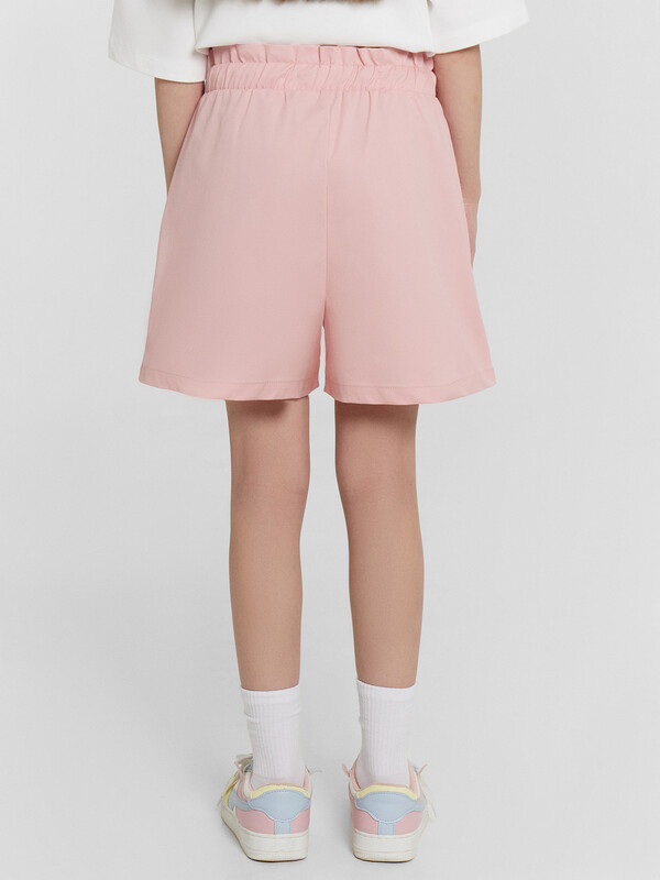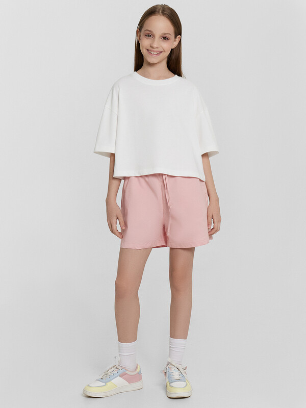 Шорты для девочек. Силуэт свободный. Пояс отрезной из основного полотна, с эластичной