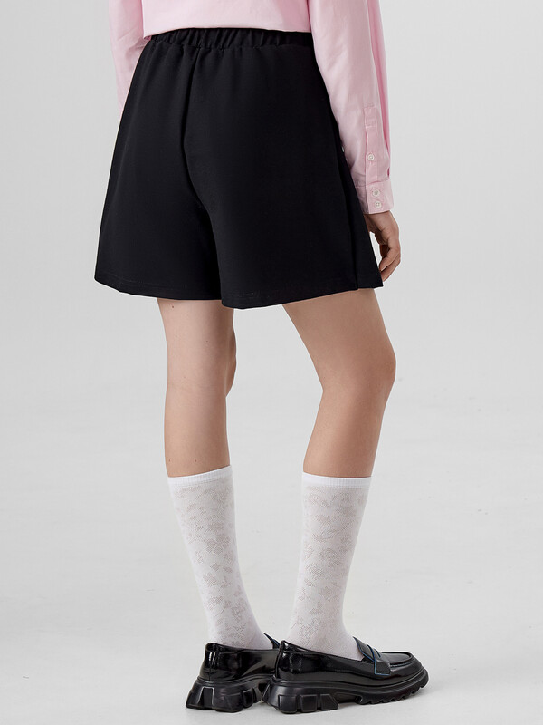 Шорты с отрезной деталью по переду имитирующую юбку. Длина выше колен. Пояс отрезной с внутренней эластичной тесьмой 40RV. По передней детали заложены две складки. Низ изделия швом вподгибку.