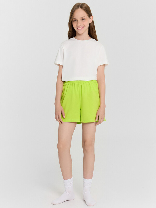 Эти домашние шорты для девочек — удобный и стильный вариант для повседневного комфорта! Свободный силуэт обеспечивает свободу движений, позволяя ребенку чувствовать себя уютно и непринужденно. Эластичная талия мягко фиксирует посадку, не создавая давления, а аккуратная обработка низа швом вподгибку гарантирует долговечность и эстетичный вид изделия. Шорты выполнены из хлопковой кулирки — материала, который отличается мягкостью, воздухопроницаемостью и приятными тактильными ощущениями. Они станут отличным выбором для домашнего отдыха, игр или сна. Дополните шорты подходящим топом или футболкой из этой же коллекции, чтобы создать стильный и удобный комплект, в котором маленькая модница будет чувствовать себя комфортно и уверенно!
