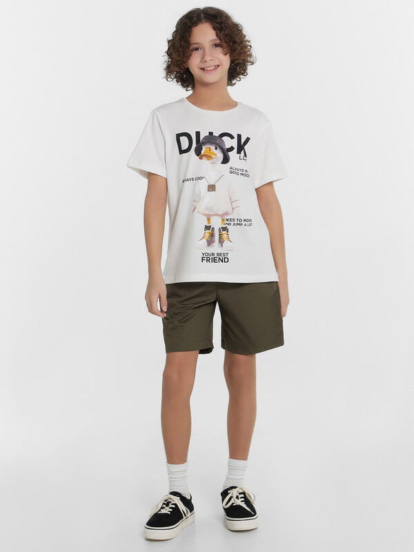 Тканевые шорты длиной до колен с классической линией талии. Силуэт прямой. Спереди есть карманы "хулиганы". Пояс – с эластичной тесьмой внутри. Имитация гульфика. Нижние срезы шортов подложены. Стильные шорты для вашего мальчика!