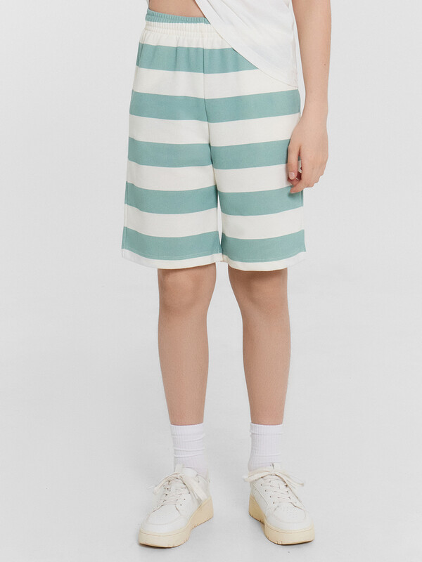 Шорты свободного силуэта для мальчиков. Пояс с эластичной тесьмой внутри и шнуром-завязкой с внутренней стороны. Есть удобные боковые карманы. Нижние срезы шортов подогнуты. Рекомендуем для спорта, дома и активного отдыха!