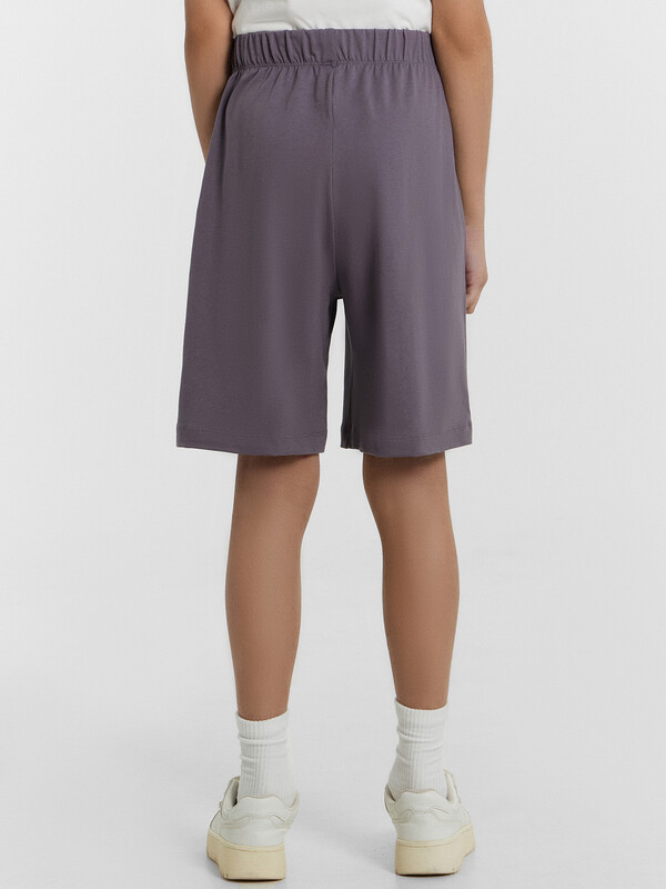 Шорты ниже колена, свободного силуэта с высокой посадкой на талии. Пояс цельнокроеный внутри с резиной 40RV. Внутри пробиты петли и втянута х/б тесьма 10TGY-0 Низ шорт в подгибку.