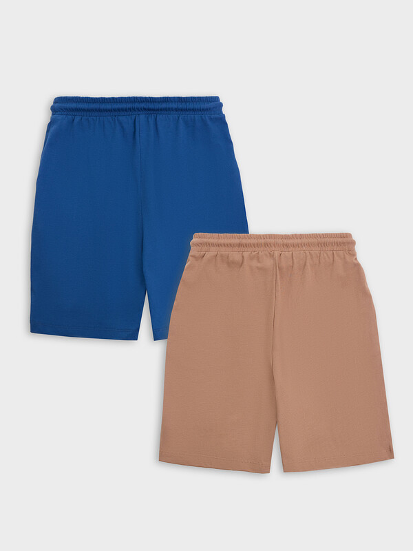 ШОРТЫ ДЛЯ МАЛЬЧИКОВ 2ШТ. 133330-2 (134-140 (140-68), полуночно -синий +молочный шоколад +печать)(Mark Formelle)