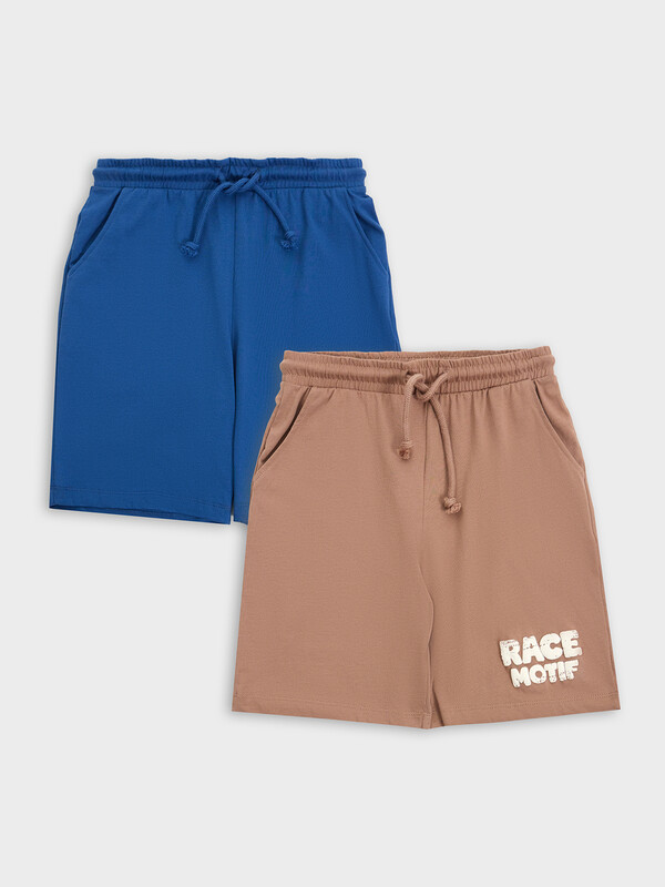 ШОРТЫ ДЛЯ МАЛЬЧИКОВ 2ШТ. 133330-2 (92-98 (98-52), полуночно -синий +молочный шоколад +печать)(Mark Formelle)